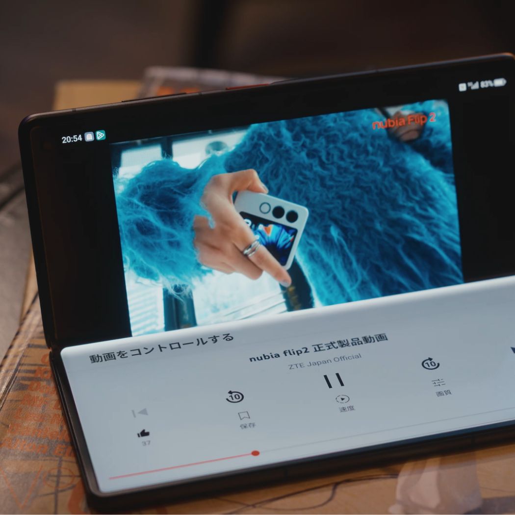 半開き状態で2つの画面を分けて利用すれば